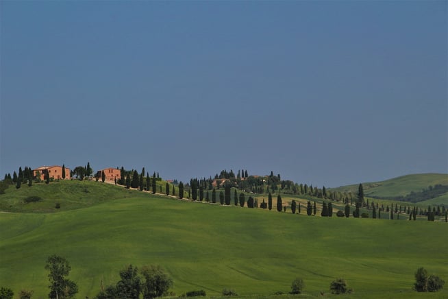 (prendre la direction de Buonconvento et Bellaria au nord ouest à 2 km de San Quirico d’Orcia) : il s’agit d’un bouquet de cyprès perdu au milieu de nulle part dans un paysage ondulé. Ce paysage se regarde comme un tableau dont les formes sont pures, sobres et libres. C’est au printemps qu’il est le plus beau car les couleurs apportent au tableau des contrastes saisissants de beauté.