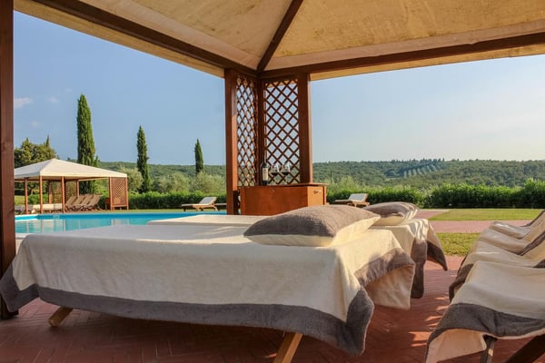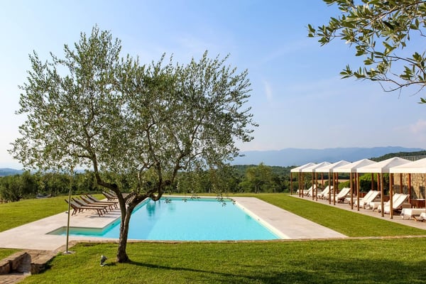 Deux belles piscines d'eau salée avec vue imprenable sur les collines toscanes, le vignoble et les oliveraies, sont à la disposition des hôtes.